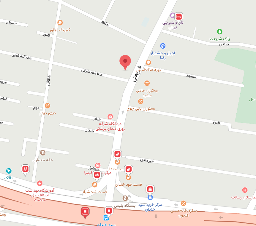 تهران، خیابان شریعتی، بالاتر از پل سیدخندان، روبروی مسجد امام صادق (ع)، پلاک 972